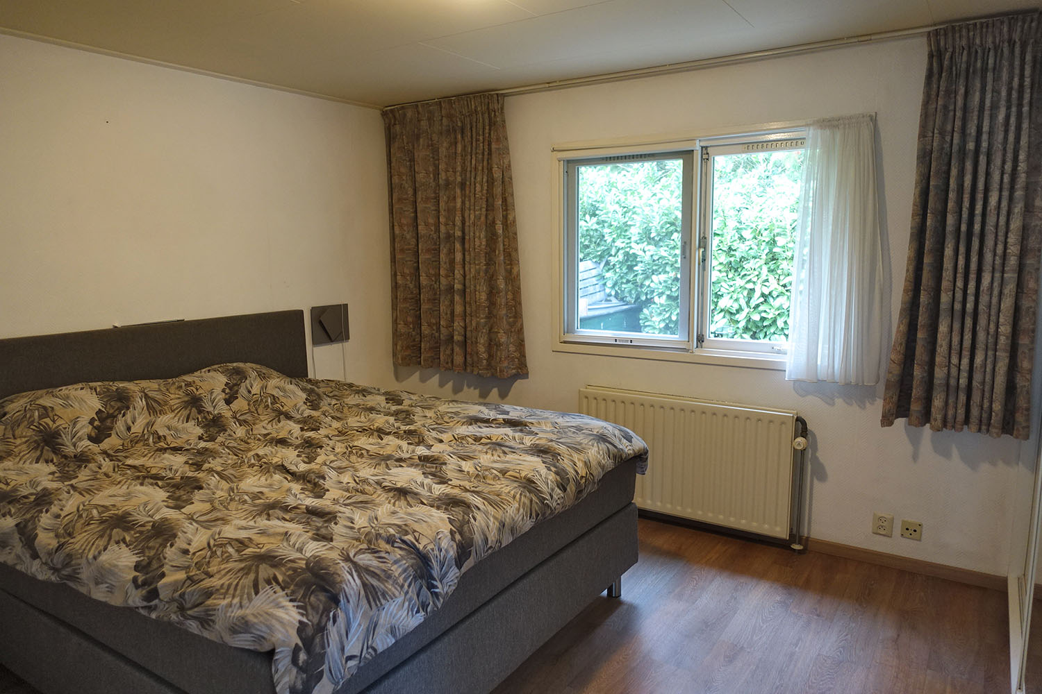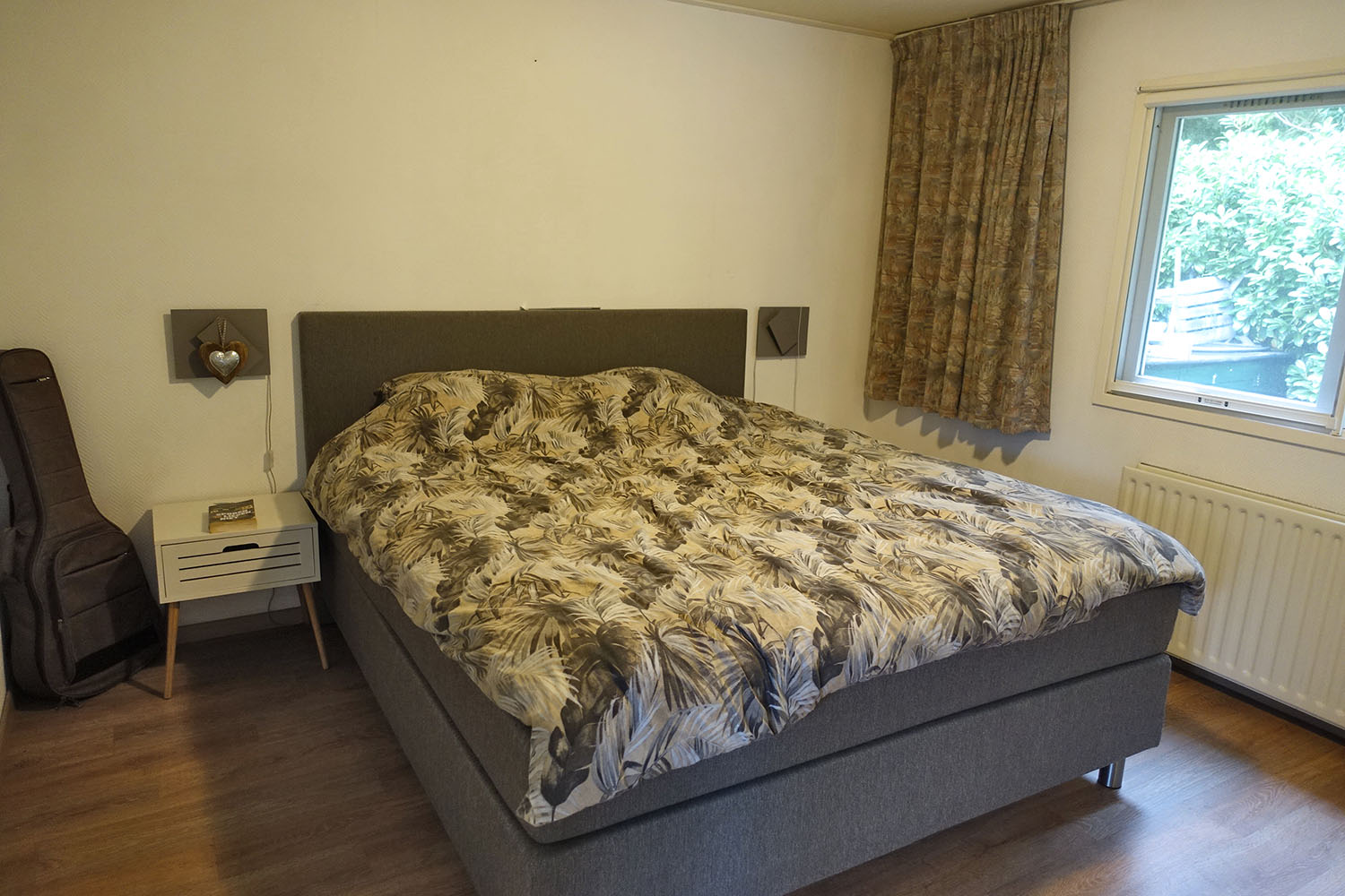 Met 2 slaapkamers is er plaats voor 4 personen. In de zeer ruime ouderslaapkamer 3.75×2.90 staat een boxspring van 1.80×2.10 en er is een grote inbouw wandkast. De extra slaapkamer 3.00×1.95 is nu in gebruik als werkkamer, maar zou plek hebben voor een klein 2- persoonsbed, stapelbed en/of 2 smalle 1- persoonsbedden. Op beide slaapkamers zit cv.